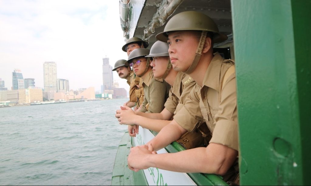 Living Monuments的活動完全參考當年的進退路線:12月11日,是城門碉堡失守、守軍由九龍撤退到港島的日子,演員便在尖沙咀站崗,再坐天星小輪到港島,象徵撤退一刻。Photo Credit: Mainichi Newpaper, Japanpublic domain