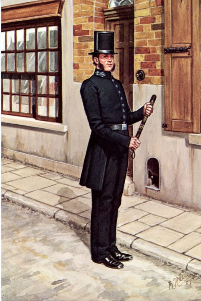 1829年成立後,倫敦大都會警察選用深藍色制服,故意與身穿紅色制服的英軍區分,警員只配備警棍,僅有少數督察或以上的人員可配備左輪手槍或者軍刀,因為當時倫敦大都會警察奉行「在市民認受下執行警務」(Policing by consent),強調警察只是身穿制服的平民,維持治安的權力的合法性來自公眾認受。警察必須嚴守《卑利爵士警務九原則》(Sir Robert Peel’s Nine Principles),當中第六條列明:「警察只有在說服、建議和警告都不足以實現警察的目的時才能使用武力以確保能夠維護法紀和恢復秩序。而且,警察在任何情況下都應該使用最低限度的武力以達到警察的目的。」 因此英國警察視不普遍使用槍械這種致命武器為傳統,以依靠良好警民關係執法為榮。
